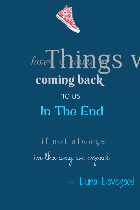 Things We Lose Luna Lovegood Things We Lose Luna Lovegood Template | PosterMyWall: Cut a length of wire a little over 3 feet (1 meter) long. Start at the bottom of the radish and work your way up, following Figure 1 below. When you get to the top of the radish, twist the top of . What do we lose when our connection with our cosmic environment is broken? The night sky is humankind’s only truly global common, shared by all of us across civilizations and millennia. .